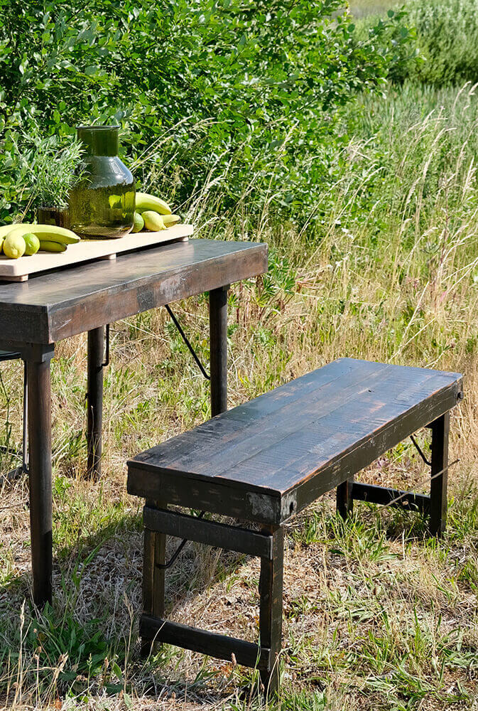 Rå og charmerende sort træbænk med masser af kant og historie. Den mørke, slidte finish fremhæver træets naturlige struktur og tilføjer et autentisk, rustikt look, der passer perfekt ind i en maskulin og rå indretning. Denne bænk er fremstillet af genanvendt træ og har et unikt udtryk, hvor små ujævnheder og patina fortæller om tidligere brug. Den sorte farve giver den et moderne twist, der gør den nem at kombinere med både træ- og metaldetaljer.