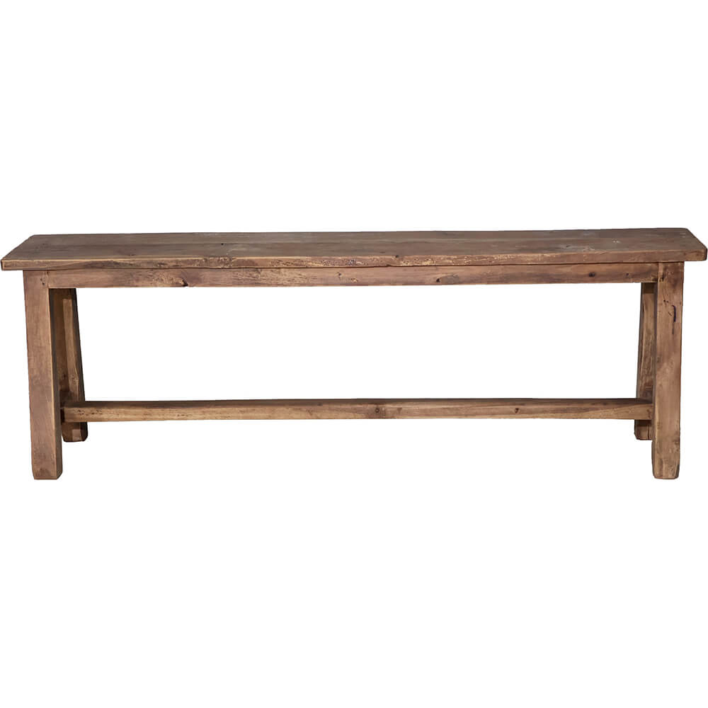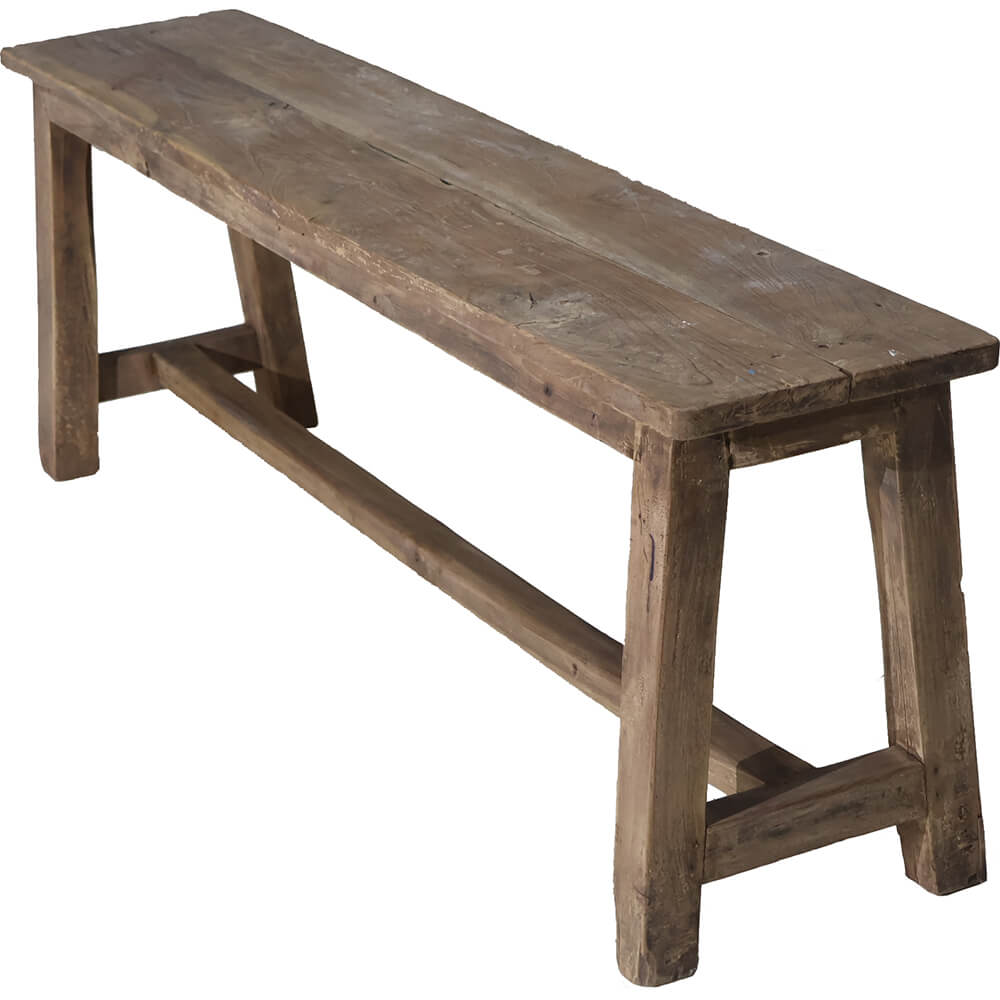 Denne gamle træbænk har masser af naturlig charme og en helt fantastisk, rå enkelhed. Den er lavet af smukt patineret træ, der bærer spor af mange års brug på den helt rigtige måde. Brug den i entreen, foran spisebordet, ved fodenden af sengen eller i butikken til udstilling af varer. Den tilfører varme, personlighed og et strejf af historie til ethvert rum. En tidløs klassiker, der fungerer både praktisk og æstetisk, og som kun bliver smukkere med tiden.