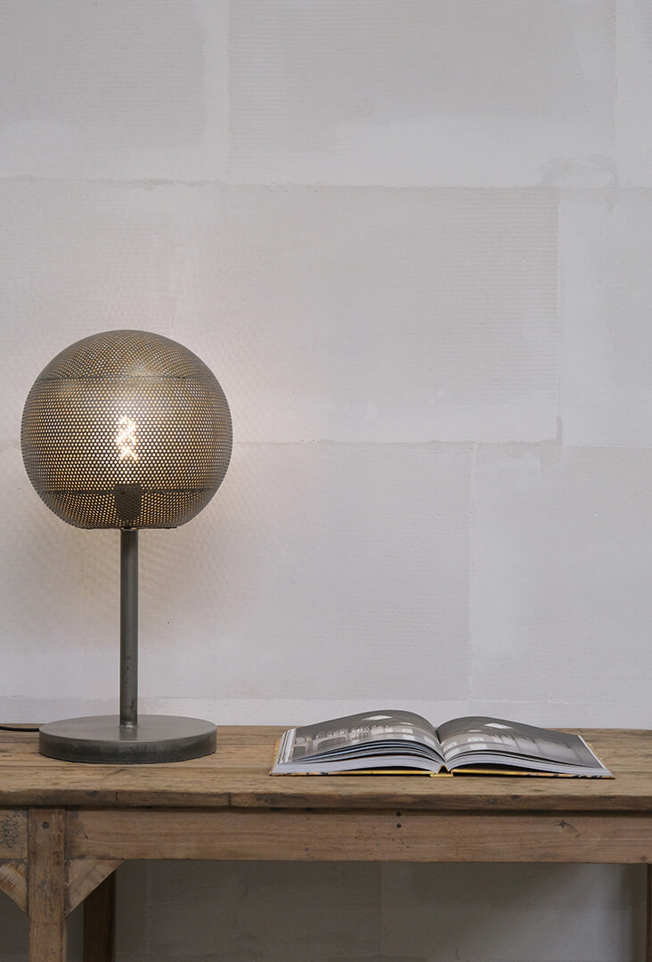 Trademark Livings serie af Moonlight lamper består af lamper, der med deres udstråling vil tilføre ethvert rum en smuk belysning. Denne model, Moonlight bordlampe, kan både bruges til bordlampe eller som en cool mindre gulvlampe. Lampen har en solid rund fod med en diameter på 25 cm., der danner basen for en tynd stamme, som møder en rund skærm i perforeret jern. De små huller i skærmen giver et eventyrligt lysspil i rummet. Her er tale om et stilistisk design, der passer perfekt til både den rå, klassiske eller simple indretning. Denne model er fremstillet i 3 størrelser. Denne bordlampe, samt en gulvlampe i størrelse medium og large.