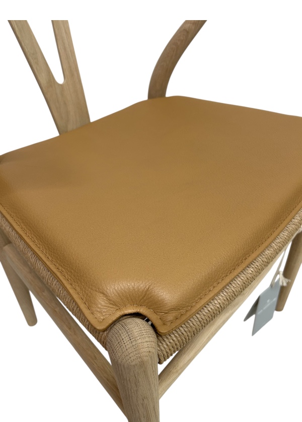 Leder du efter den ideelle CH24 Y-stol hynde i Natur Elmorustical læder (farvekode 43632)? Vores håndlavede hynde er specialdesignet til Wegners ikoniske Y-stol og produceret i vores egen danske systue med fokus på komfort, kvalitet og æstetik.