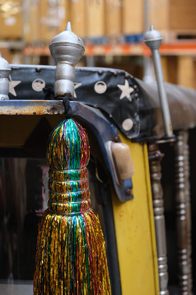 Denne gamle tuk-tuk er et helt særligt fund med masser af personlighed, historie og charme. Den bærer tydelige spor fra sit liv på vejene. Slid, patina og originale detaljer, som gør den autentisk og fuld af karakter. De farverige kvaster, håndlavede dekorationer og den karakteristiske form fortæller historien om et køretøj, der har været en naturlig del af hverdagen i et andet land og en anden kultur.