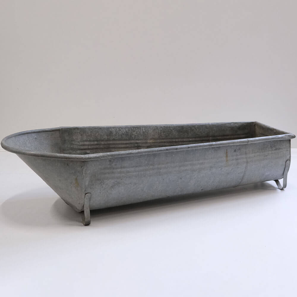 Et unikt fund med masser af historie og charme. Dette gamle badekar i zink er et sjældent stykke, der emmer af patina og autentisk håndværk. Med sit enkle, funktionelle design og smukke grålige overflade er det et dekorativt element, der straks skaber blikfang både inde og ude.