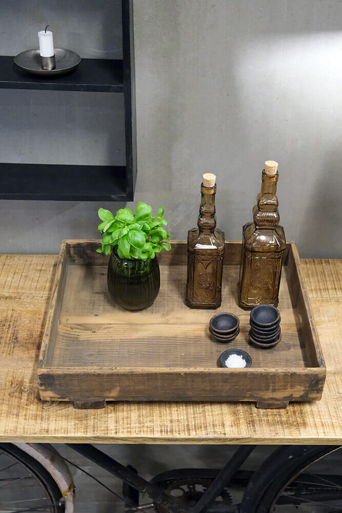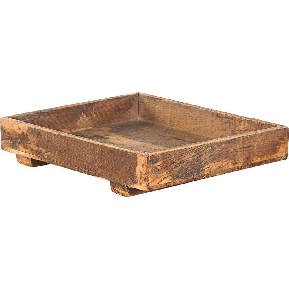 Denne gamle træbakke emmer af historie og håndværk. Med sit slidte udtryk, grove snit og smukke patina er den ikke bare en praktisk opbevaringsløsning, den er et lille stykke vintage magi, hvor hver bakke har sin egen personlighed. Brug den til servering, som base for stilleben eller til at samle dine favoritnips på et bord eller i vindueskarmen. Uanset placering tilføjer den varme og karakter til rummet, og lidt af den der “fund fra en gammel markedsplads”-stemning, vi ikke kan få nok af. Et must-have for elskere af det rustikke og det uperfekte.