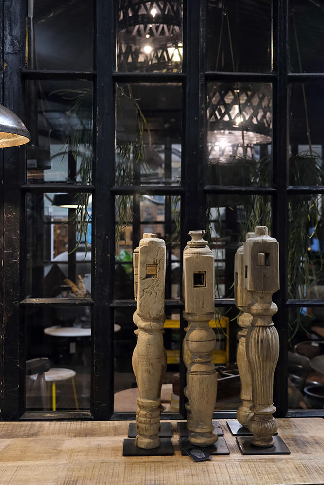 Skøn og charmerende genbrug ses her i form af gamle bordben, der er sat på en metal plade.