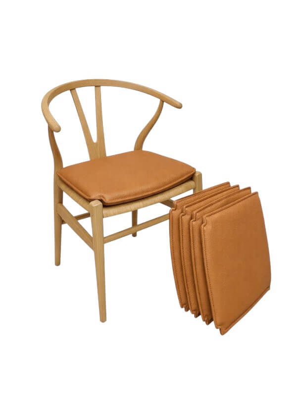 Hynden er præcist skræddersyet til Y-stolens karakteristiske form og ligger sikkert og elegant uden at forstyrre Wegners ikoniske design. Det ægte semi-anilin læder i lys brun cognac giver et varmt, eksklusivt udtryk og en luksuriøs siddekomfort – samtidig beskytter hynden fletsædet og forlænger stolens levetid.