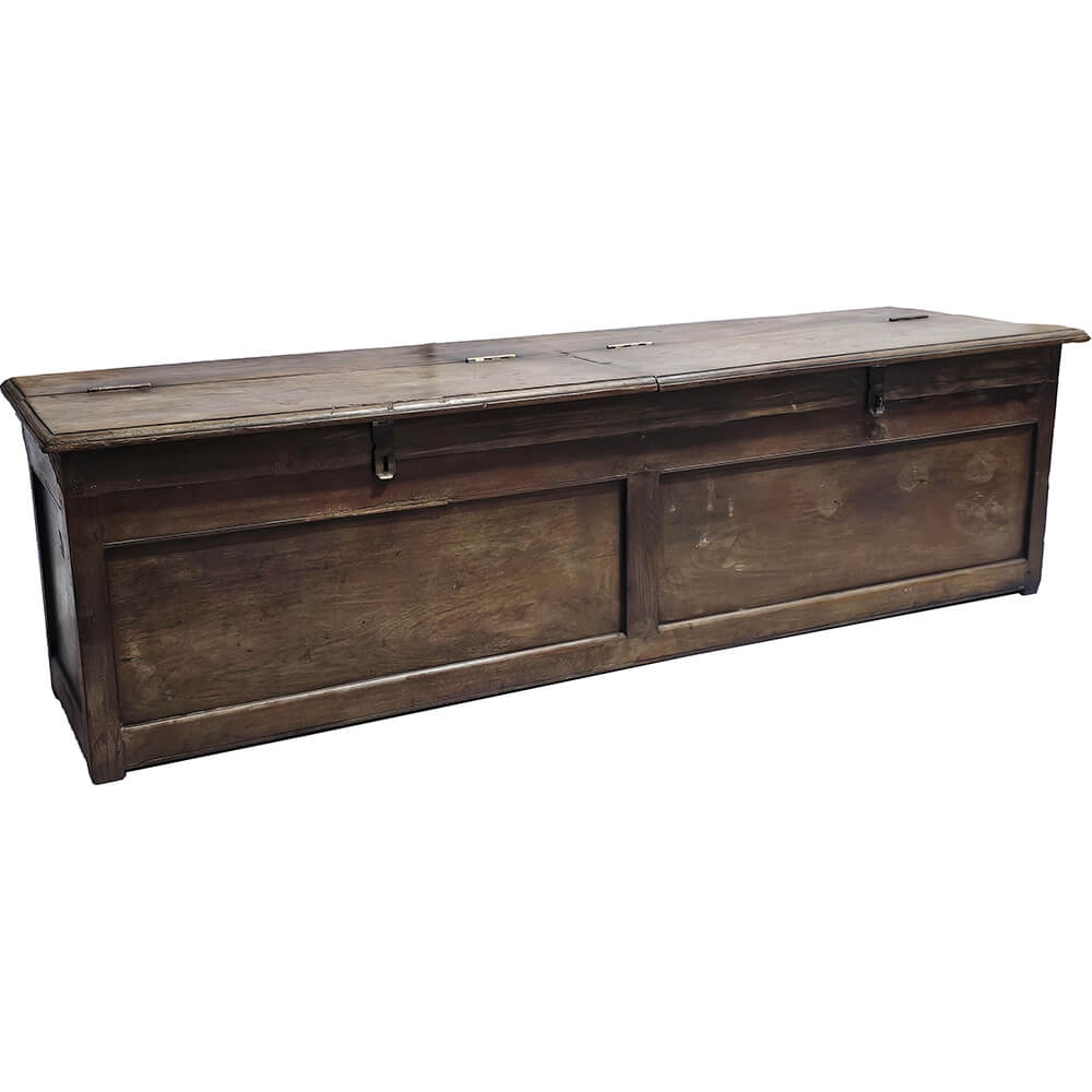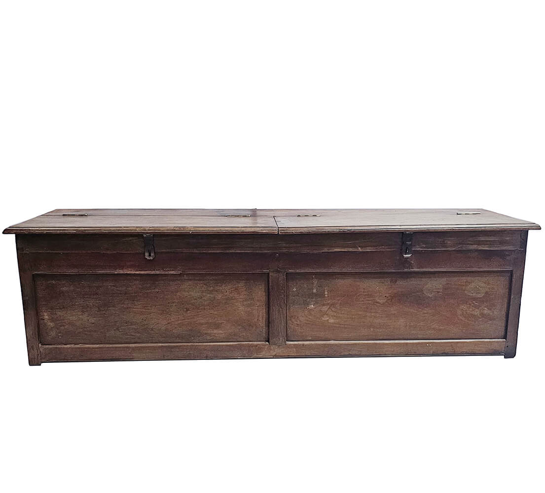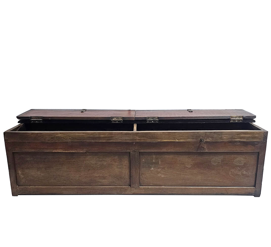 Denne smukke gamle trækiste er ikke kun til opbevaring. Med sin robuste konstruktion, slidte overflade og dobbelte låg gemmer den på fire separate opbevaringsrum, perfekt til dig, der gerne vil holde styr på alt fra sko til tæpper eller legetøj.