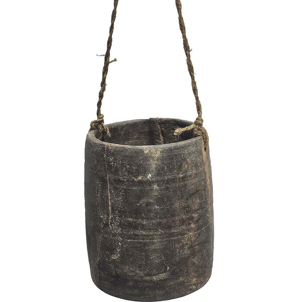 Den grove overflade, de håndslåede detaljer og juterebet gør krukken til et naturligt blikfang i både rå og rustikke omgivelser. Hæng den op med en plante, brug den som borddekoration eller lad den stå på en hylde, hvor den får lov at fortælle sin egen historie.