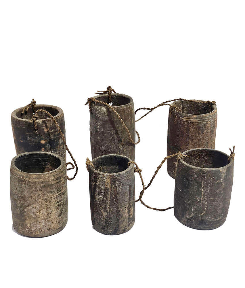 Disse gamle vandkrukker har hver især levet et liv, før de endte her hos os. De er alle unikke i både form og farve og måler mellem 20 og 27 cm i højden. Oprindeligt brugt til at øse vand med, i dag perfekte som dekorative krukker med masser af autentisk patina.