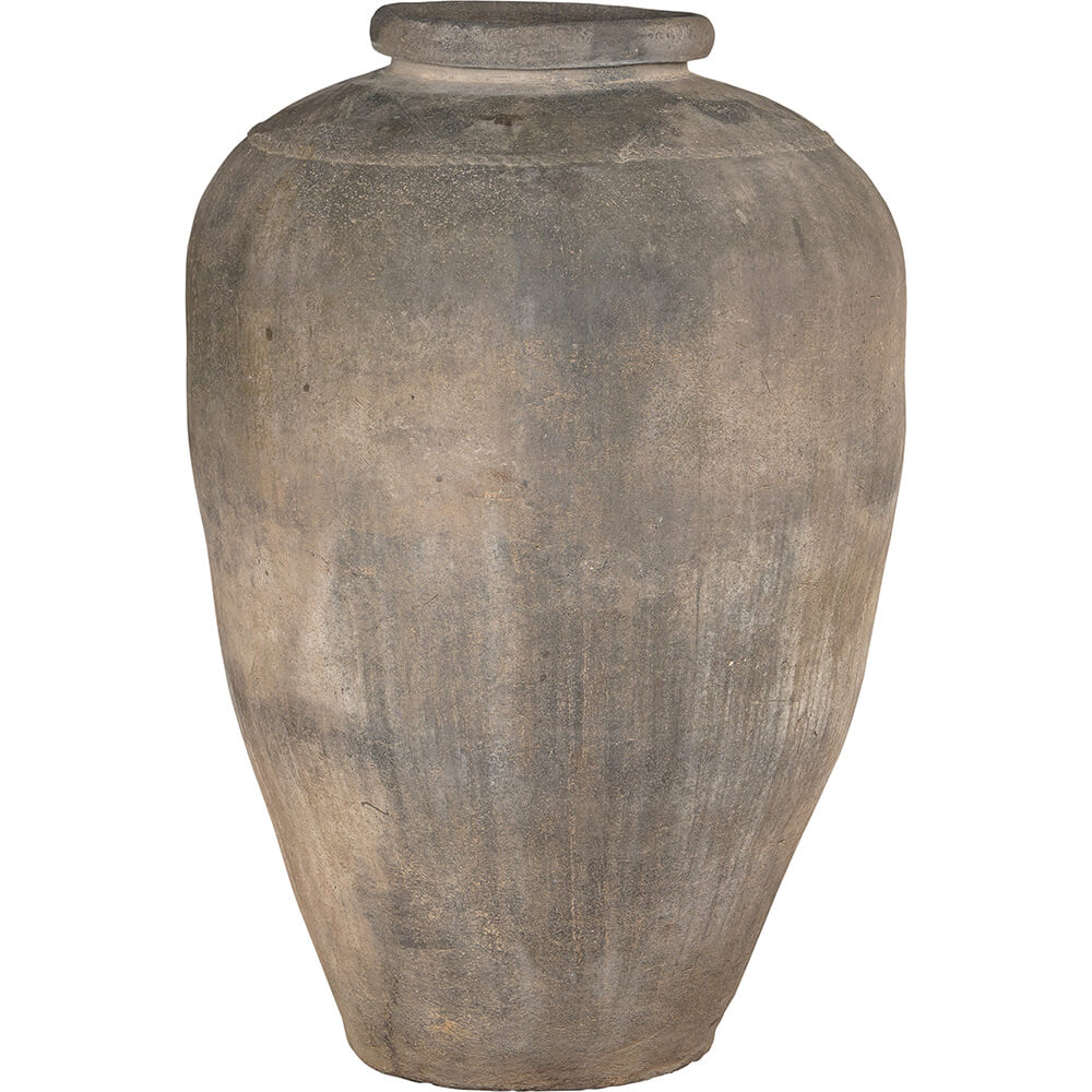 Denne imponerende kæmpestore lerkrukke har et tidløst og rustikt udtryk med sin naturlige patina. Den robuste form og den diskrete farvepalet gør krukken til en alsidig dekoration, der nemt kan integreres i både moderne og rå indretninger. Overfladen er præget af naturlige nuancer og små skønhedsfejl, som giver den karakter og autenticitet. Brug krukken som en flot gulvdekoration i hjemmet, der hvor du har plads. Den vil også være ideel i en restaurant eller café, hvor den kan fungere som en stor “vase” med tørrede grene eller planter, hvilket vil skabe et råt og autentisk miljø. OBS! Krukken er ikke vandtæt eller frostsikret. Vi anbefaler derfor, at du laver et plastikindlæg.