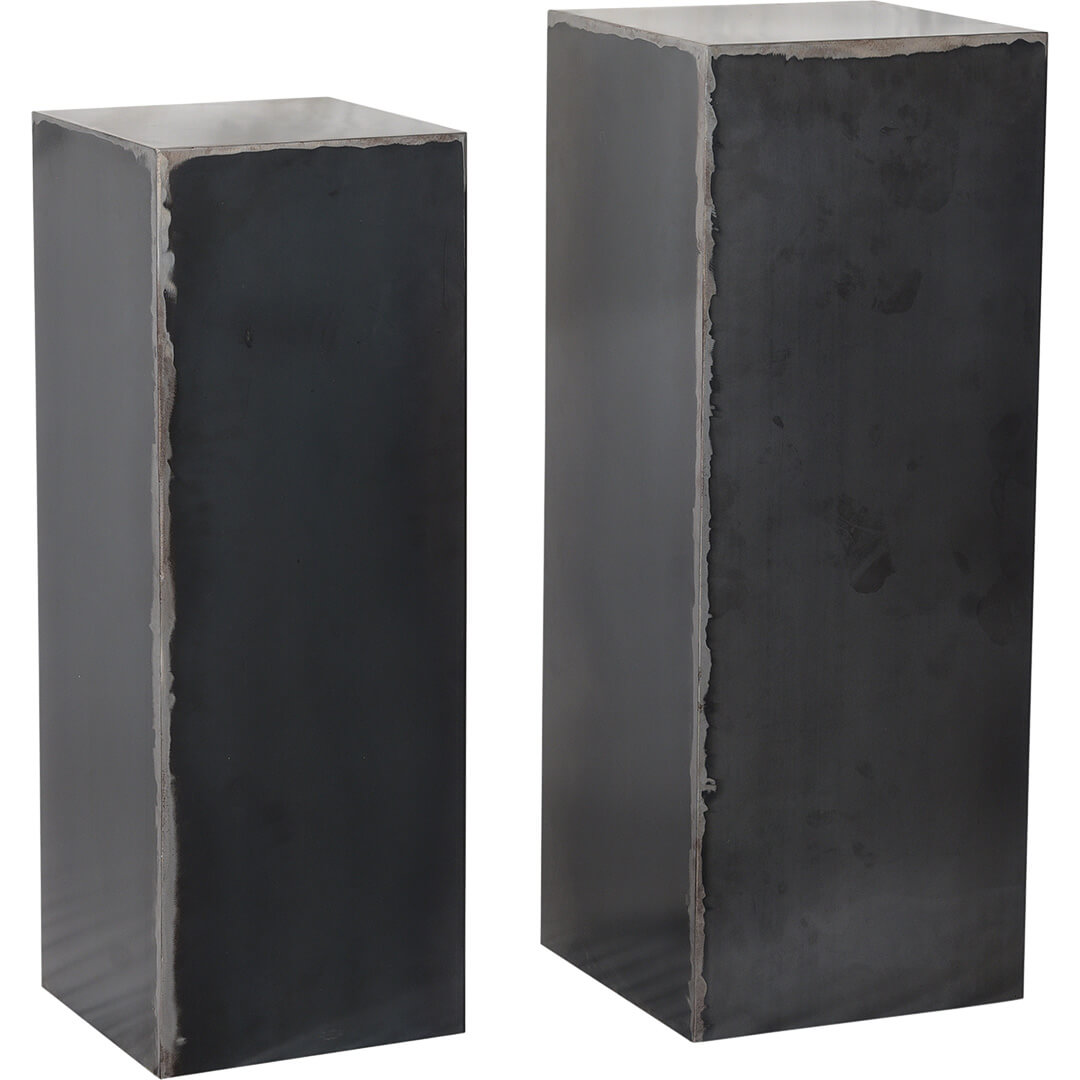Kraftfulde og rå metalpiedestaler i pulverlakeret jern. Piedestalerne har et meget råt og enkelt look, der gør dem ideelle som piedestaler eller podier til f.eks. planter og blomster. Du kan også sætte en glasmontre, en stak bøger eller en æske derpå og style det med en vase eller en skulptur. Så her har du en virkelig fin display mulighed også.