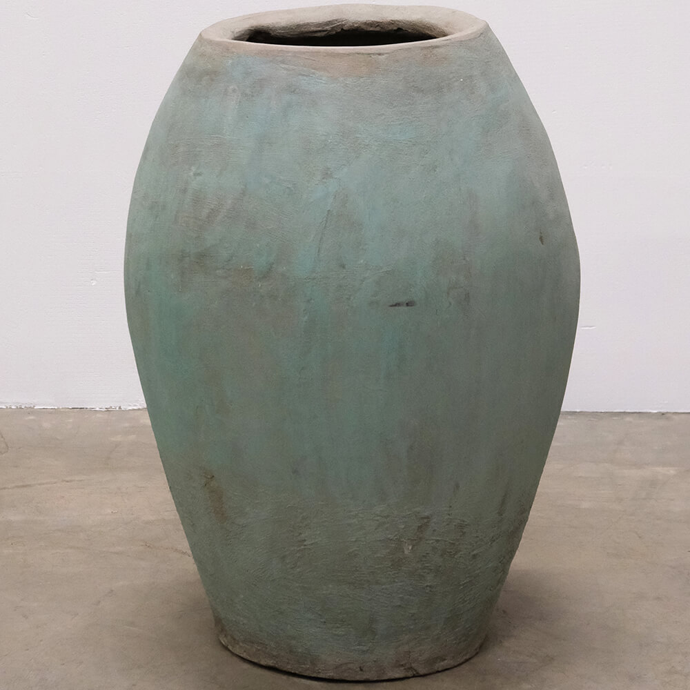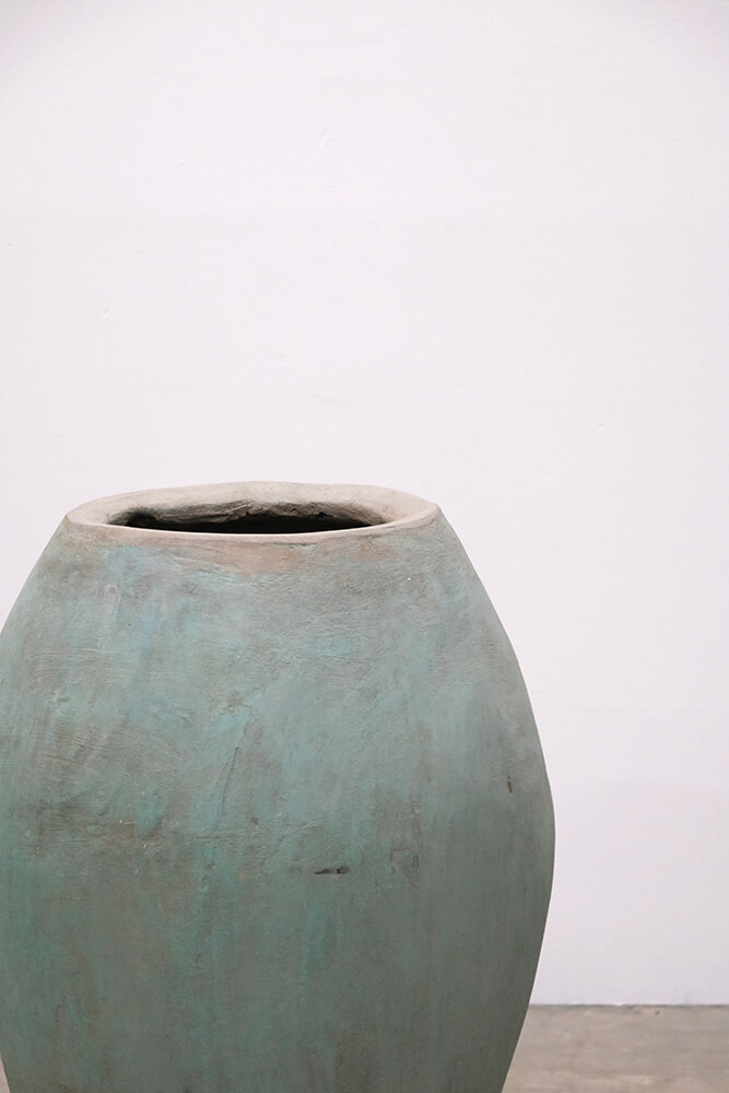 Denne smukke gamle lerkrukke bringer farve og karakter ind i ethvert rum. Den intense, men patinerede farve er slidt på naturlig vis og afslører nuancer af lerets rå materiale under malingen.