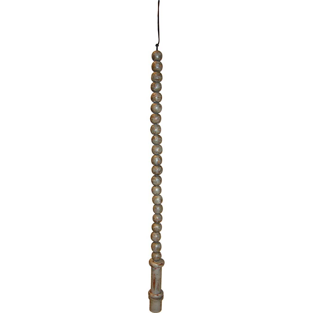 Her får du en hængelampe, der skiller sig ud med sit skulpturelle udtryk og rå charme. Lampen er lavet af gamle sytrådsspoler, som er sat sammen med en række trækugler og malet i en skøn antikgrå farve. Den afsluttes af et lille jernrør med fatning, som giver den det helt rigtige industrielle touch. Den grå overflade giver lampen en afdæmpet og stilfuld karakter, der passer perfekt ind i både moderne og enkle indretninger. Den kan fungere som et stemningsfuldt blikfang i en entré, hænge flere sammen over et spisebord eller bruges i kombination med de 2 andre farver i serien natur og sort for et mindre stringent og personligt udtryk.