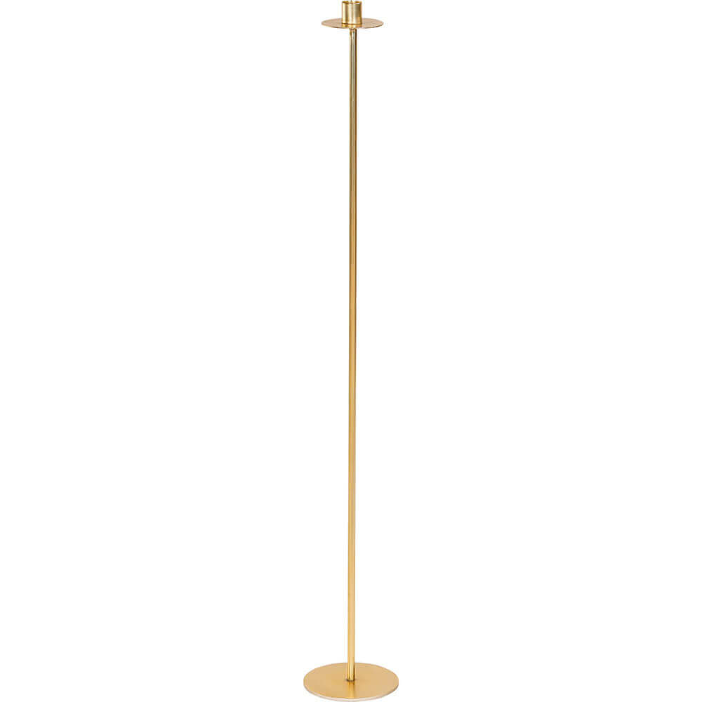 Denne 90 cm høje lysestage er den mest markante i Dean-serien og skabt til at gøre indtryk. Med sin ekstra højde tilfører den rummet tyngde, ro og en tydelig vertikal linje, som giver indretningen mere spil. Den er fremstillet i jern og malet i en varm messingfarve, der giver et råt, men indbydende udtryk. Lysestagen egner sig særligt godt som gulvlysestage, perfekt ved sofaen, i et hjørne eller som en del af en større opstilling med flere stager i forskellige højder. Det enkle formsprog gør, at den både kan stå alene og indgå i en gruppe uden at dominere for meget. Dean-serien fås i flere størrelser og farver, hvilket gør det nemt at skabe et personligt og sammenhængende udtryk i indretningen.