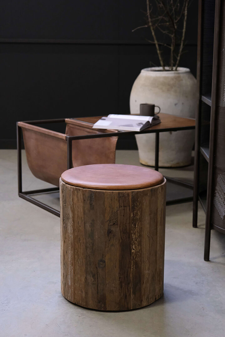 Rund sædehynde i brunt læder. Hynden har et enkelt og moderne design. Placer den hvor du har lyst, måske har du en bænk eller en vindueskarm den passer perferkt til. Hynden passer desuden perfekt til Loke spisebordstolen (varenummer: M01117)og kommer med 4 skruer til fastmontering.