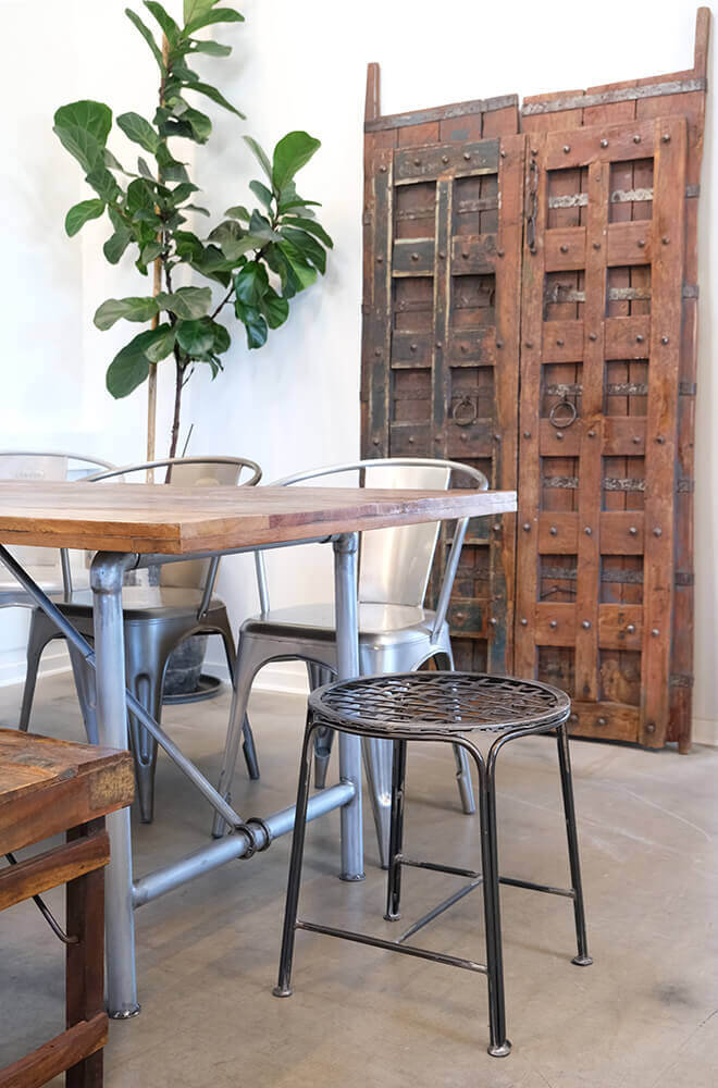 Chic lille jernskammel i fransk stil med fletsæde i jern, der kan bruges både som siddeplads eller som en stilfuld platform til at vise din yndlingsplante, bøger eller en lampe. Dens funktionelle design og æstetiske appel gør den til det perfekte møbelstykke, der tilføjer lidt skøn fransk stemning i enhver indretning.