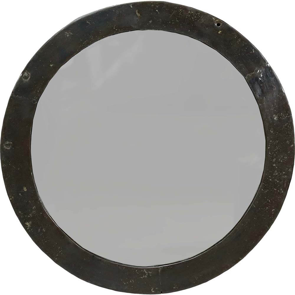 Dette runde spejl har en rå og industriel charme med sin cool ramme lavet af genvundne køreplader. Rammens patinerede og robuste udseende giver spejlet en autentisk, upcyclet karakter, der passer perfekt til rustikke og industrielle miljøer. Det solide materiale og den mørke finish skaber en smuk kontrast til det klare spejlglas, hvilket gør det til en iøjnefaldende vægdekoration. Perfekt til dem, der elsker genvundne materialer og ønsker et spejl med både historie og kant.
