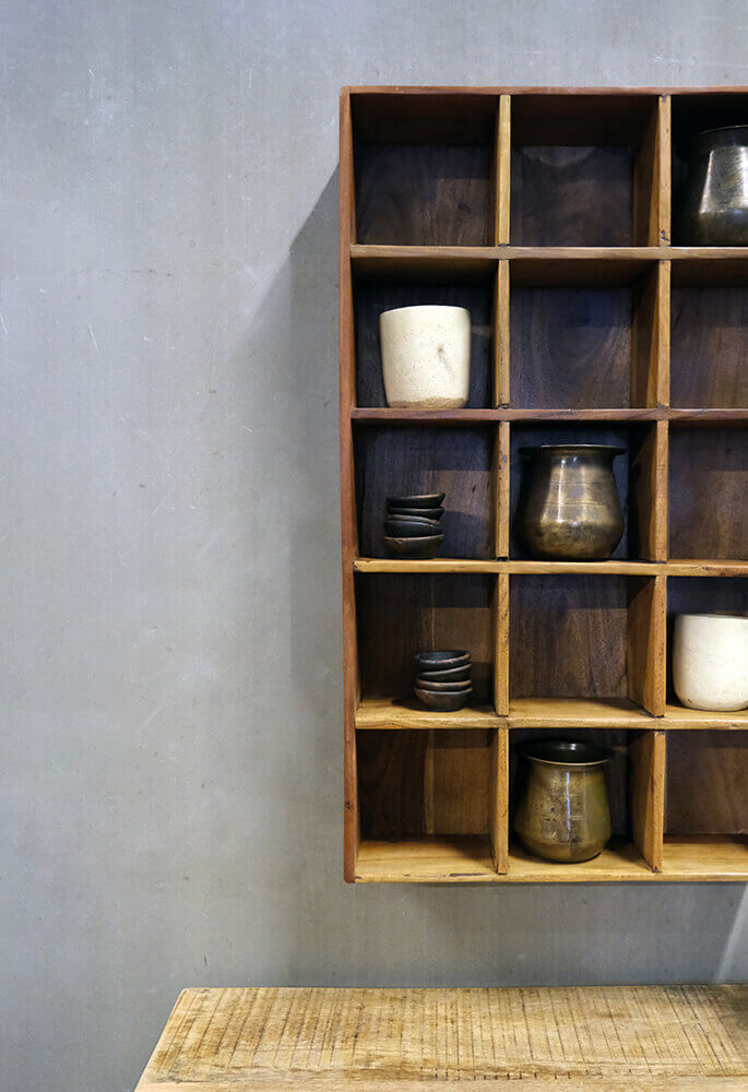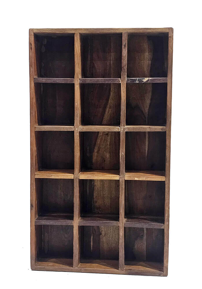 Denne kopreol i genanvendt træ er til dig, der har en svaghed for både struktur og sjæl. Reolen giver dig rig mulighed for at organisere dine kopper, krydderier eller små fund med sine 15 rum. Og det skønne, varme træ med naturlige nuancer og åretegninger gør, at du ikke behøver gå på kompromis med stilen.
