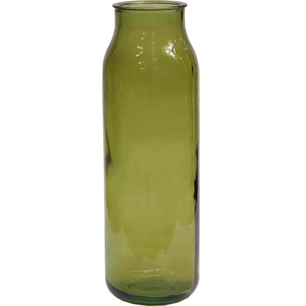Lawrence vasen i olivengrønt genanvendt glas har en afdæmpet farve og et let skær, der gør den til en diskret, men tydelig karakter i rummet. Glasset former sig med små ujævnheder og luftbobler, der giver vasen sin rustikke sjæl. Den olivengrønne tone sender tankerne i retning af natur, ro og rå stil, uden at det bliver for pænt. Brug vasen alene på et plankebord, som centerpiece med grene eller tørrede blomster, eller stil flere i klynger på gulvet i et butiks- eller restaurationsmiljø. Den fungerer også perfekt i en entre eller lounge, hvor den kan stå og trække blikket uden at råbe højt. En enkel, men kraftfuld tilføjelse til indretningen.