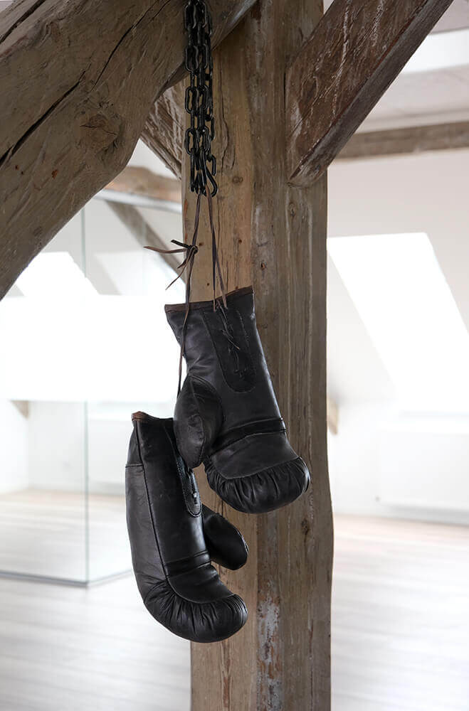 Et par virklig skønne boksehandsker lavet i lækkert sort bøffellæder. Handskernes rå og autentiske udtryk giver karakter og kant til enhver indretning, perfekt til dig, der ønsker at tilføje et sporty og anderledes element til dit hjem, butik eller din café. Hæng handskerne alene som et dekorativt statement, eller kombiner dem med en af vores vintage boksepuder for at skabe et gennemført setup, der med garanti tiltrækker opmærksomhed.